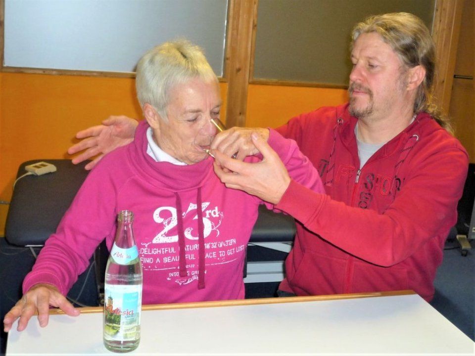 So findet eine Rehabilitation des Patienten durch gezieltes neurologisches Training statt.